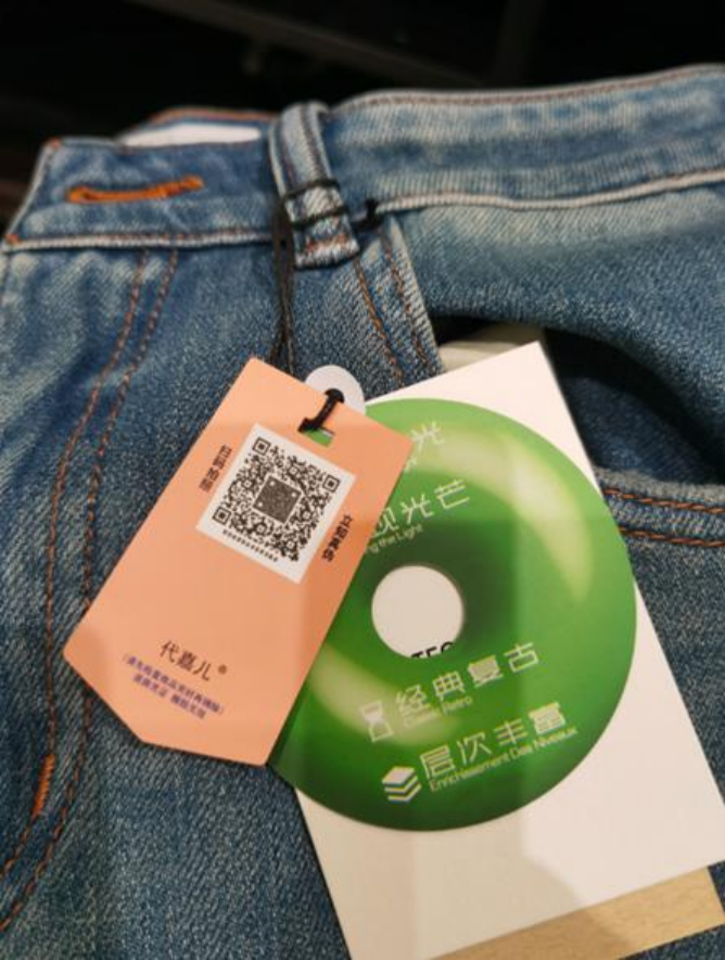 代嘉儿服饰引入了保诚信的微图墨迹码智能防伪技术,每一件代嘉儿牛仔裤,拥有了独一无二的"身份证",结合AI算法生成唯一标识,造假者无法仿冒。标签不仅提升了产品的辨识度和防伪能力,还采用了特种合成纸材质,具备出色的耐撕裂性和防水能。通过先进的包装一体化喷印技术,实现了在线数据采集,确保每张吊牌的唯一性和生产效率。