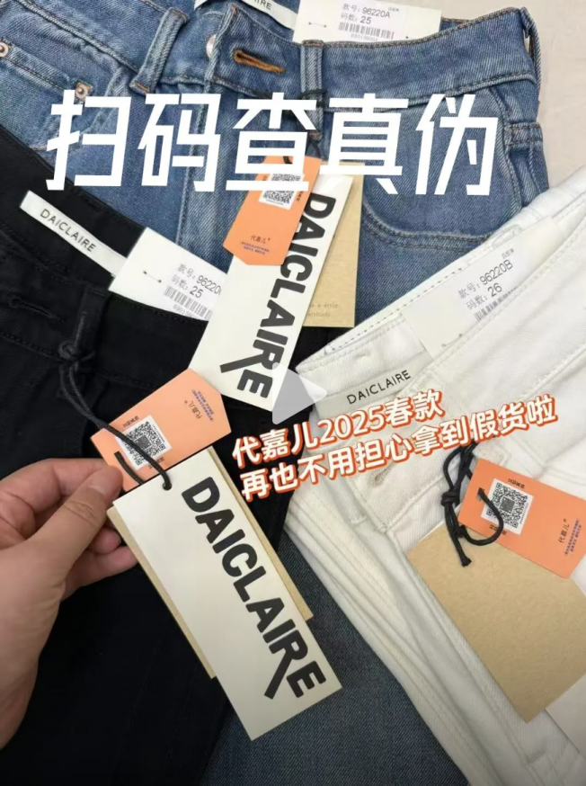 代嘉儿牛仔裤,作为一个正在崛起的年轻品牌,凭借品质与设计深受消费者青睐,却也成为假货仿冒的"重灾区"。2024年,代嘉儿携手武汉保诚信科技,引入微图墨迹码技术,实现防伪升级: