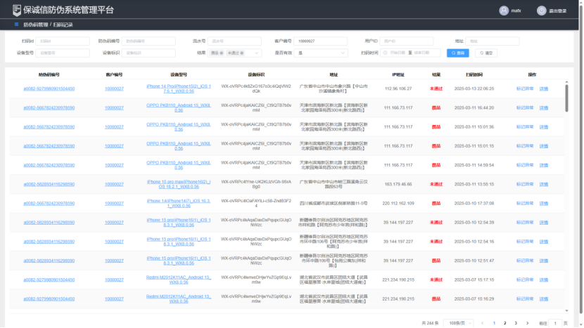 系统实时记录扫码时间、地点,大数据分析系统会监控和分析用户扫码行为,一旦发现扫码异常,便会邮件、短信等形式通知工作人员,帮助品牌锁定假货流通路径。一旦确认微图墨迹码被仿造,会给此码打上伪造标签。后续用户在扫码的时候会给出风险提示,拍照验证也会给出未通过和非正品码结果,从而避免消费者购买,保护了消费者权益。