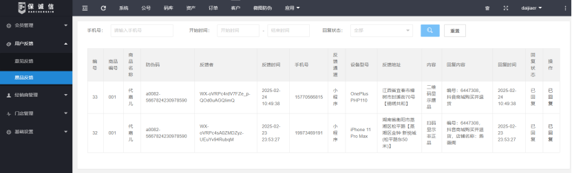 验真数据实时上传,造假者篡改信息将触发系统预警,系统自动标记异常区域,精准推送打假线索。代嘉儿品牌通过保诚信App直连消费者,实现售前防伪、赝品溯源、窜货预警全链路闭环。