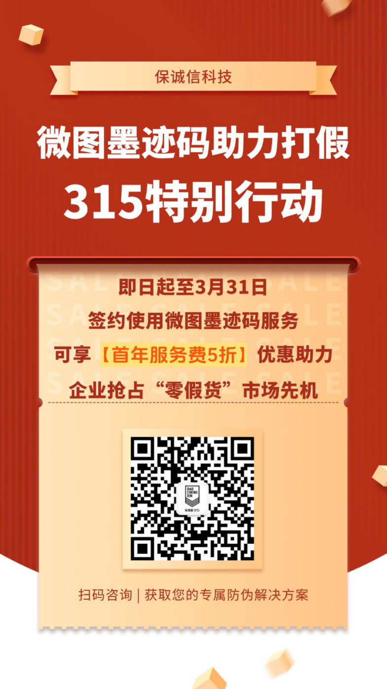 即日起至3月31日,签约使用微图墨迹码服务可享《首年服务费5折》优惠,助力企业抢占"零假货"市场先机!