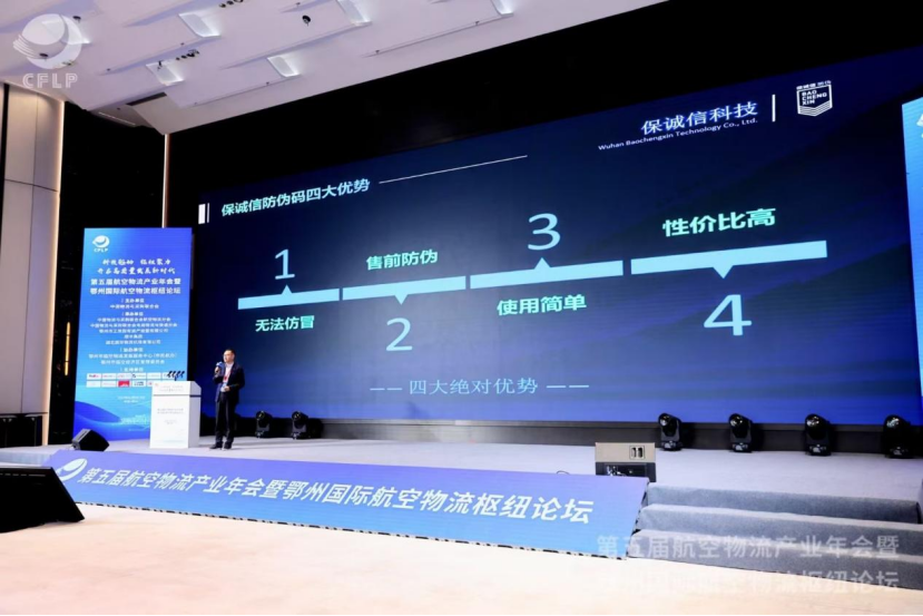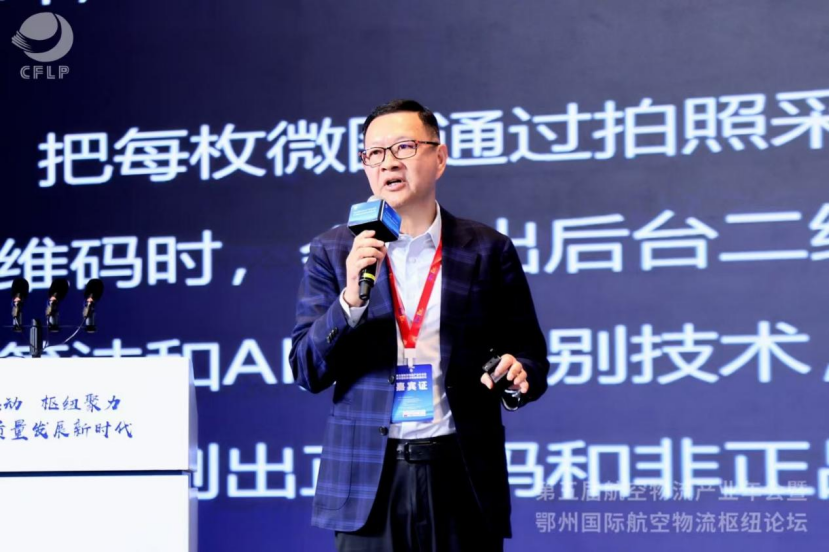 董事长宋育锋先生作为嘉宾,在航空物流科技秀活动环节上台分享,展示了最新的航空物流业防伪溯源技术和应用解决方案,为与会者带来前沿洞察与战略思考。